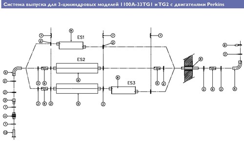 В комплект поставки входят: система глушителей, сильфон из нержавеющей стали, колено выхлопного коллектора, прямой соединитель для выхлопных газов, монтажные кронштейны и зажимы, гибкие вставки, прямые переходники и другие крепежные детали. Указанные глушители устанавливаются на каждую генераторную установку с учетом модели двигателя и номинальных рабочих характеристик. в начало страницы